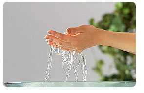 ②手・腕から脇まで軽く洗い流し、首・胸・お腹の順になでる様に軽く洗ってください。
